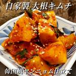 オススメ✨自家製カクテキ❗️ 旬の甘くてみずみずしい大根と 本場韓国の唐辛子を使用した 特製ヤンニョムで漬け込みました🔥 しっかりとした辛味の中に 濃厚な旨味と程よい甘味のアクセント☝️ やみつきにな …