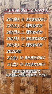 有難い事に年末のご案内席も残りわずかになって参りました。