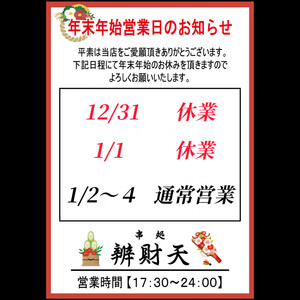 ◆ 大晦日、1/1は、お休みを頂戴します🙇