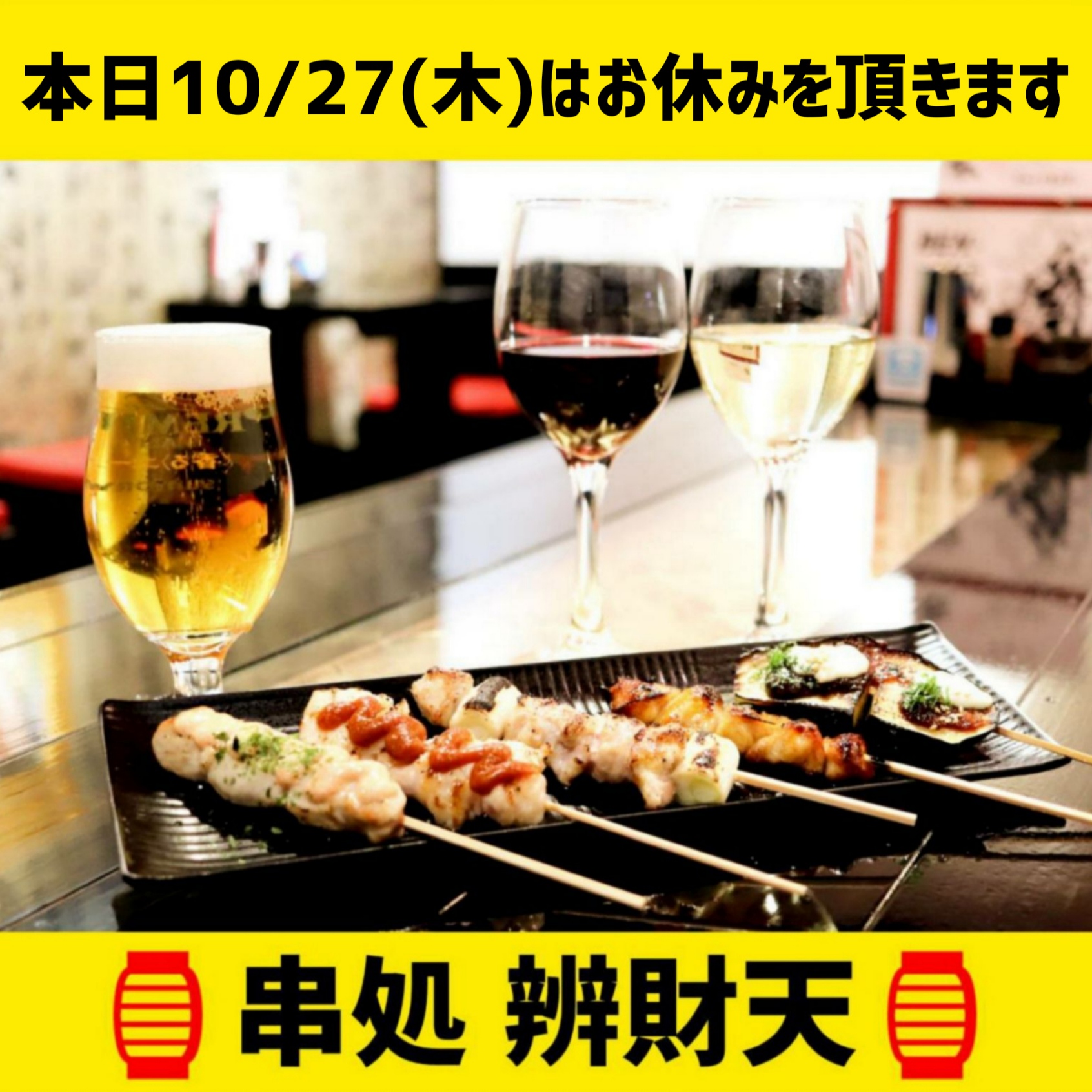 串処BEN-ZAI-TEN.は、山形県東根市神町にある焼鳥居酒屋です!地酒と焼鳥を中心に、馬刺・レバテキ等 メニューも豊富!🍺大人気の飲み放題は‟サントリー生ビール"付きです!🍜22時~夜鳴き醤油ラーメンもご提供中!🕒️17:30~24:00🅿️道路挟んで向かえ側に駐車場がございます。席数に限りがございますのでご予約をお勧めしております。皆様のご来店お待ちしております!系列店の美容室『ヘア リ・ゾートカナロア』は天童市東久野本にございます。