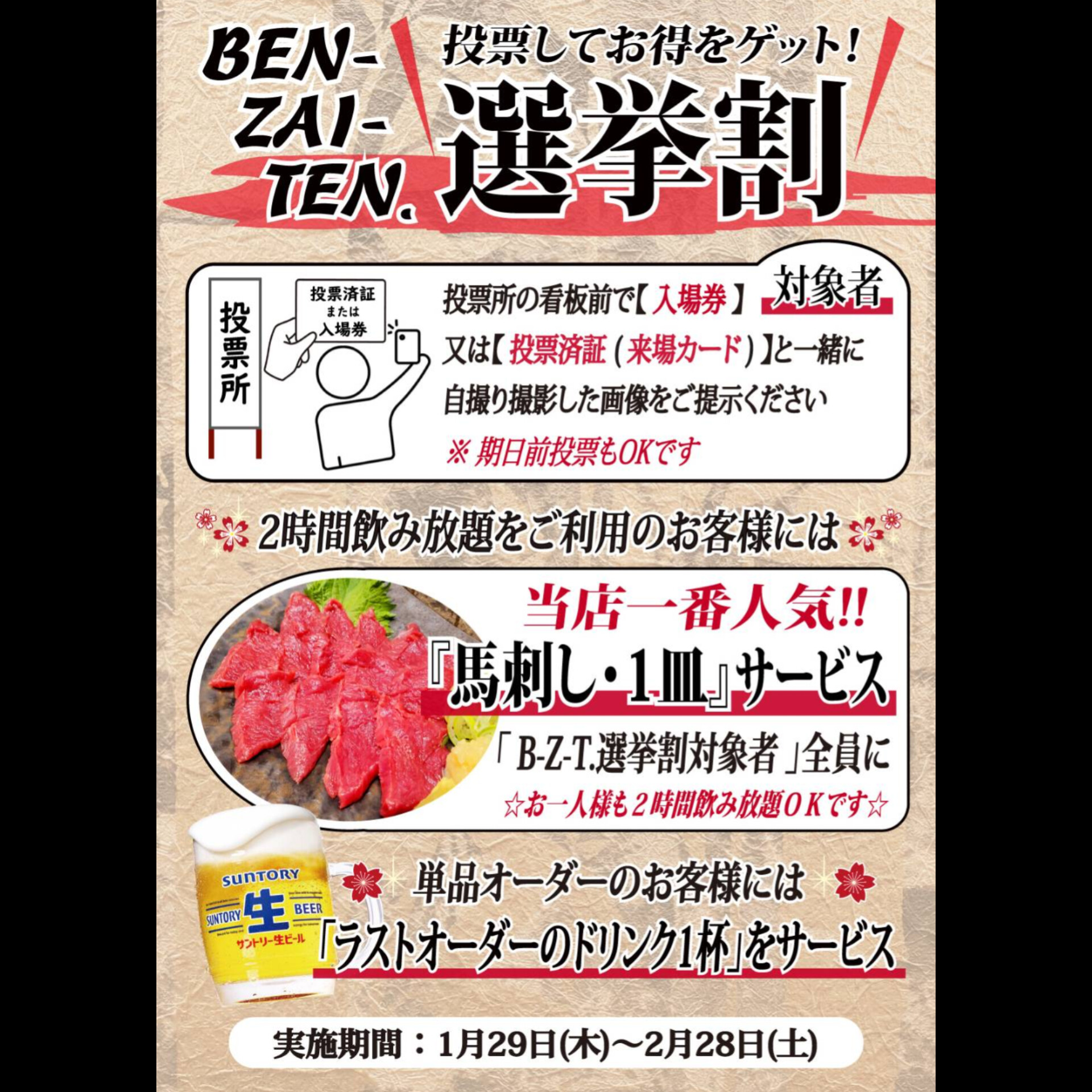 串処BEN-ZAI-TEN.は、山形県東根市神町にある焼鳥居酒屋です!地酒と焼鳥を中心に、馬刺・レバテキ等 メニューも豊富!🍺大人気の飲み放題は‟サントリー生ビール"付きです!🍜22時~夜鳴き醤油ラーメンもご提供中!🕒️17:30~24:00🅿️道路挟んで向かえ側に駐車場がございます。席数に限りがございますのでご予約をお勧めしております。皆様のご来店お待ちしております!系列店の美容室『ヘア リ・ゾートカナロア』は天童市東久野本にございます。
